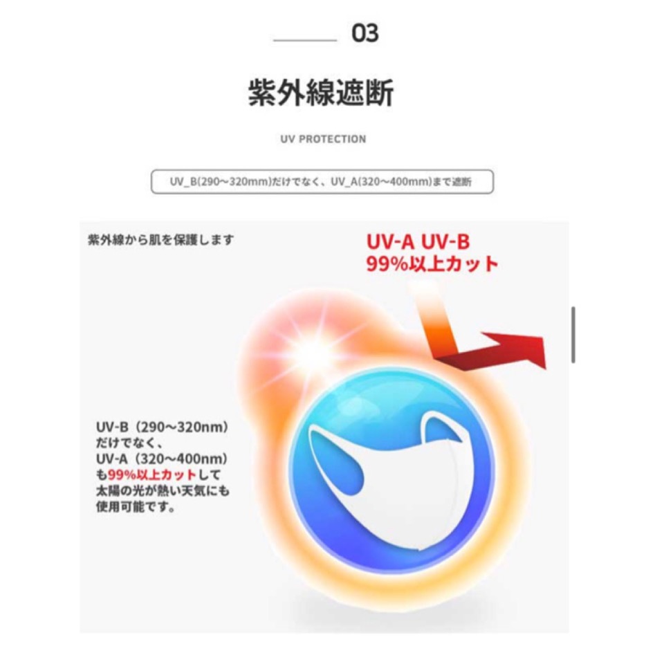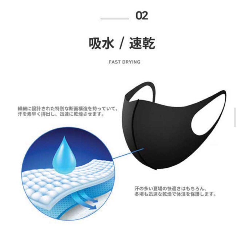こちらのマスクは、抗菌・UVカット・速乾性・消臭効果のテストを